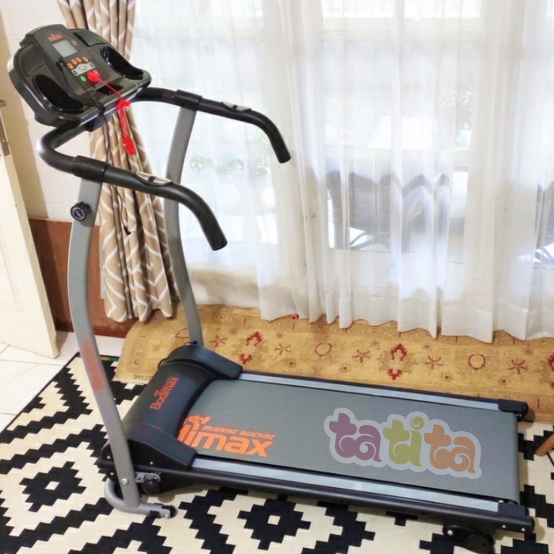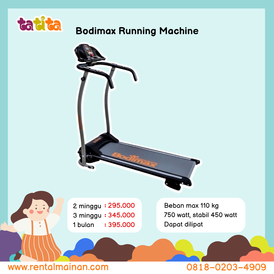 Bodimax runnining machine (treadmill) alah alat olahraga praktis yang diciptakan oleh seorang spesialis alat kesehatan yang sapat digunakan sendiri di rumah dengan kecepatan 10km/jam.