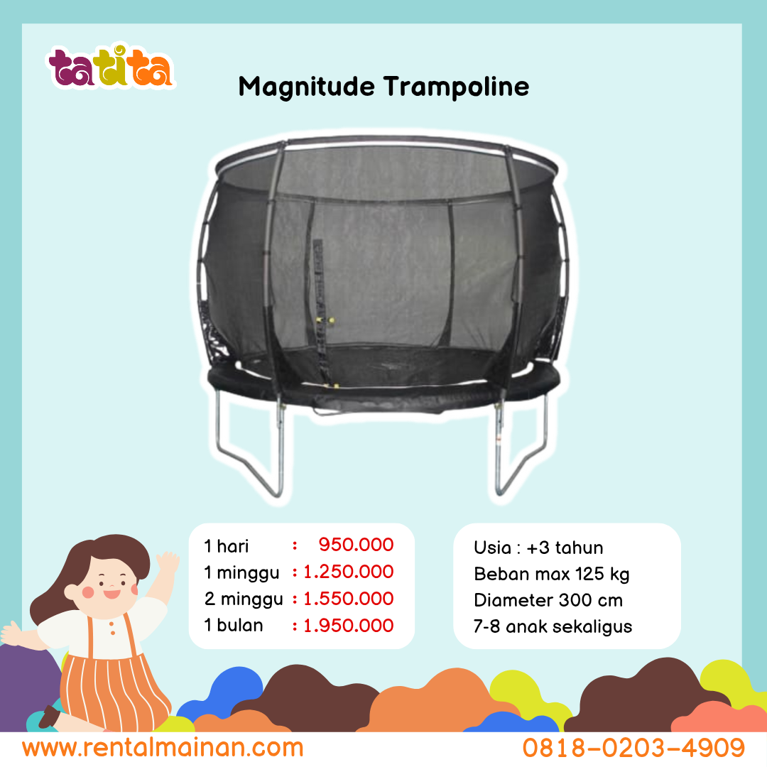Mainan interaktif ini sangat berguna untuk aktivitas anak baik untuk indoor maupun outdoor. Cocok untuk dimainkan anak yang pasif agar dapat aktif dan berfungsi untuk menyalurkan energi bagi anak yang tidak bisa diam/hiperaktif dan aktif. Trampolin ini sangat cocok untuk acara/event yang melibatkan banyak anak karena sangat kokoh dan mampu menampung banyak anak sekaligus.