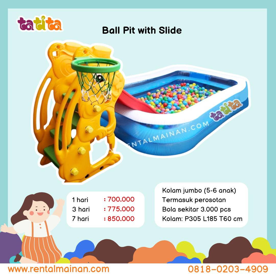- Didesain dengan bentuk yang memberikan kenyamanan bagi anak-anak maupun keluarga bermain air ataupun dijadikan mandi bola.