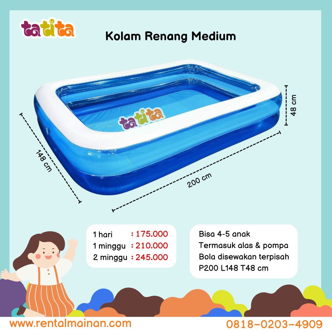 - Didesain dengan bentuk yang memberikan kenyamanan bagi anak-anak maupun keluarga bermain air ataupun dijadikan mandi bola.